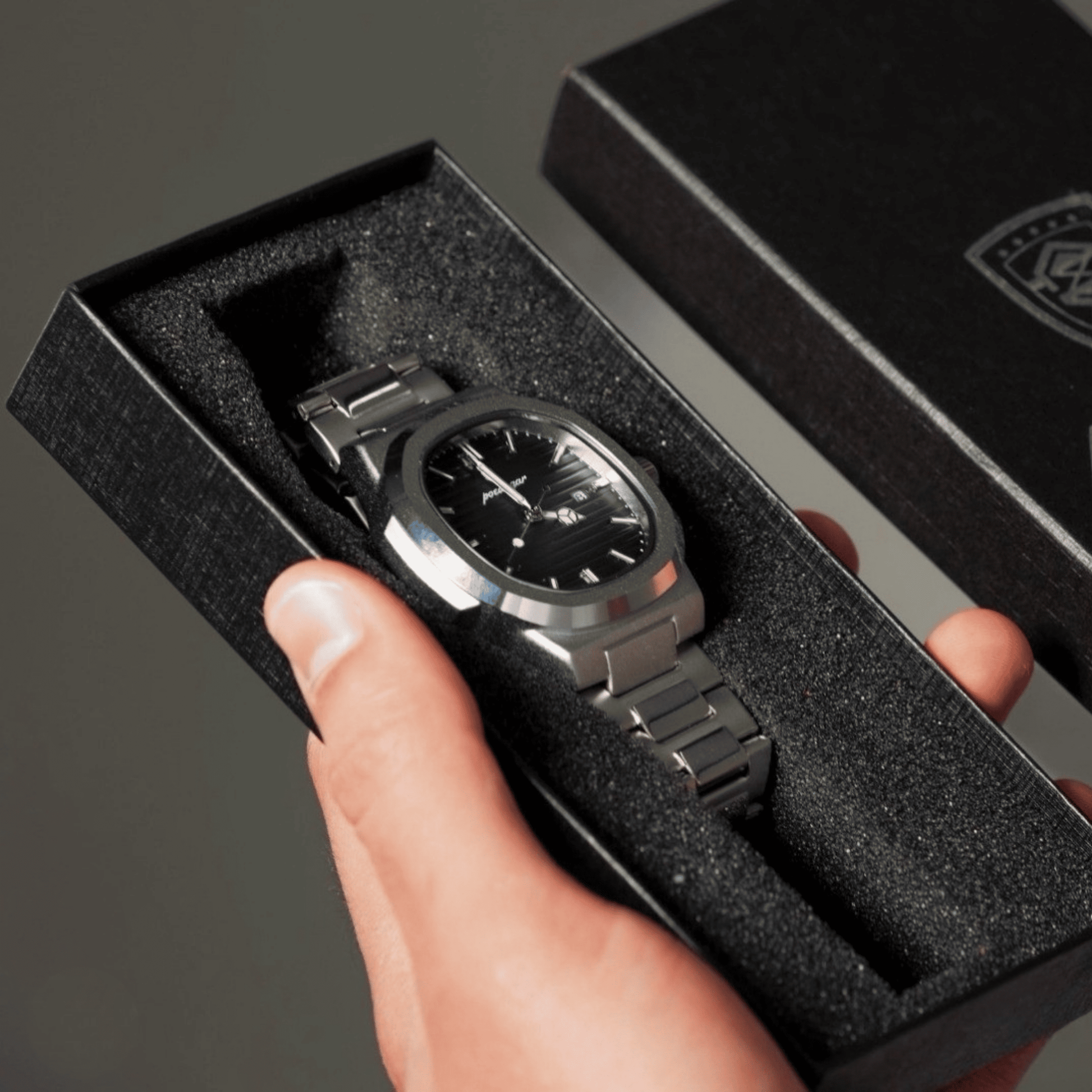 Cada pieza está elaborada en acero inoxidable 316L y cristal tratado, seleccionados por su resistencia y durabilidad.