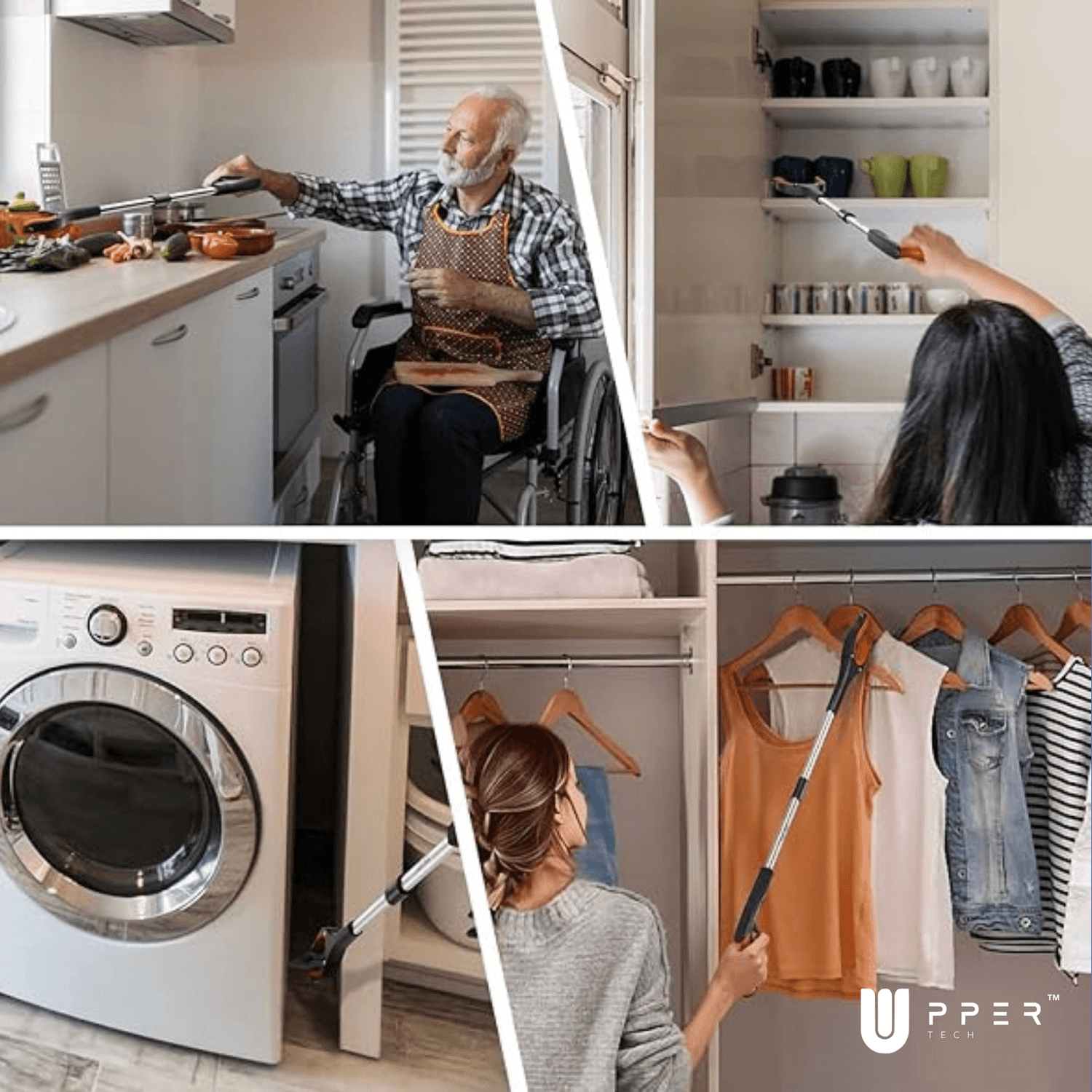 Sí, puedes girarlo libremente 360° y ajustarlo en posición horizontal o vertical según el ángulo que necesites. Ideal para recoger en espacios estrechos o alcanzar estantes altos sin forzar la muñeca.
